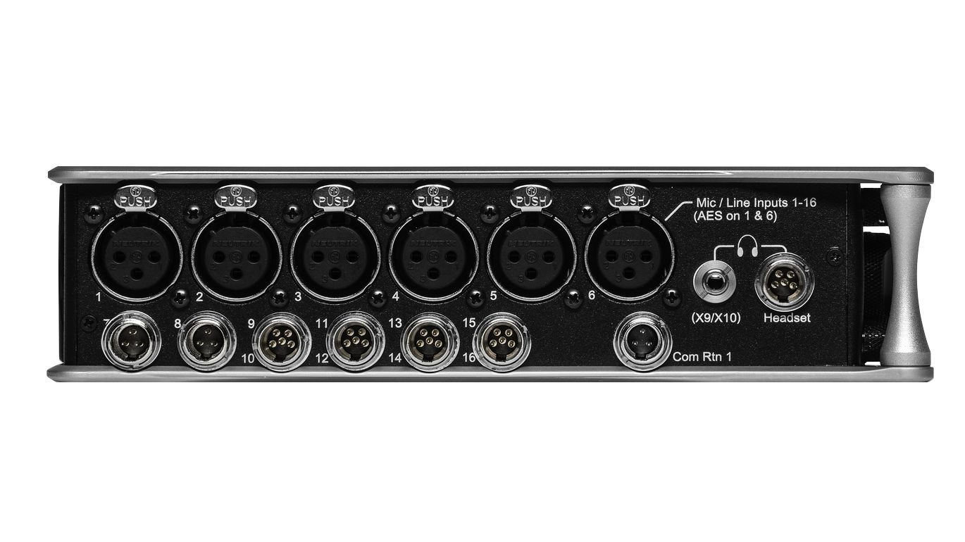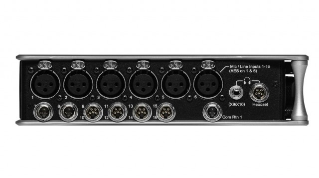 Grabador portátil con 16 preamplificadores de micrófono/línea, 32 canales de entrada/salida DANTE, hasta 36 pistas de grabación, entradas y salidas AES, 12 salidas analógicas, limitadores analógicos, filtros de paso alto, grabación en SSD y 2 tarjetas CD, generador de código de tiempo preciso, alimentación mediante 2 baterías L-Mount o fuente de alimentación externa a través de conector TA4, adaptador incluido.