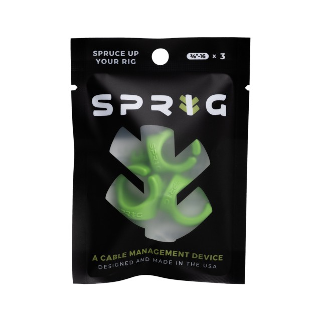 Este dispositivo verde para la gestión de cables Big Sprig (paquete de 3 unidades) ofrece a los cineastas y técnicos de sonido una solución rápida, cómoda y sencilla para mantener el orden en los tendidos de cables de su equipo de filmación y sus sets de cámaras. Con un rápido giro, se puede instalar o retirar fácilmente de un orificio roscado de 3/8"-16. Está fabricado con un material inyectado resistente, por lo que aguanta incluso las duras condiciones de un rodaje.