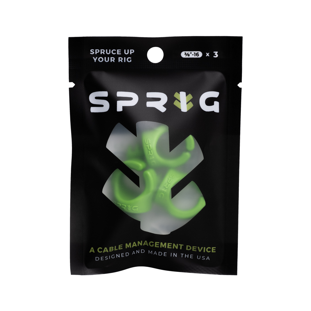 Sprig está moldeado por inyección con un material resistente y flexible para crear un gancho para cables que aguante en el plató y no se rompa bajo presión. El diámetro del orificio para el cable es de 0,53".