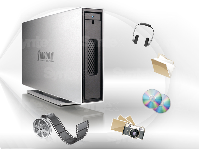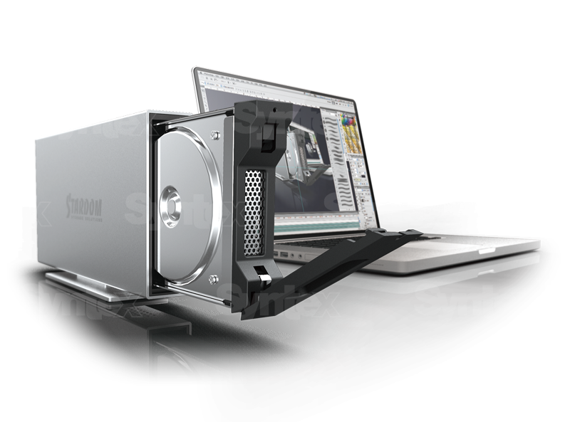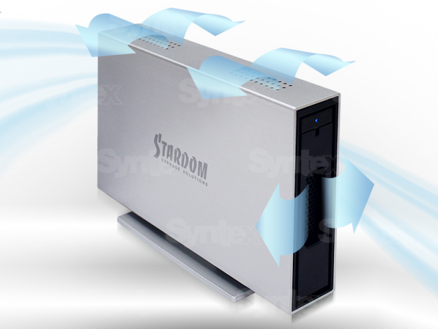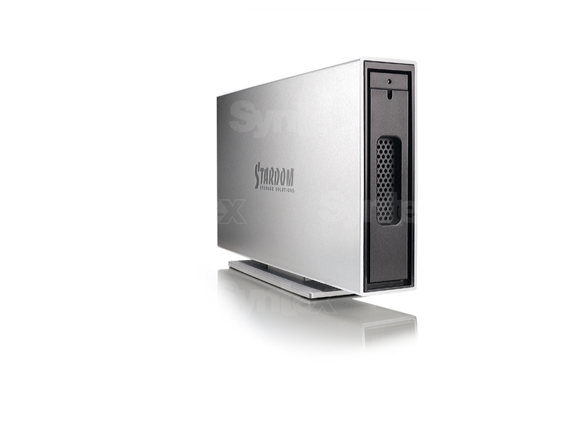 El Stardom iTANK i310es una carcasa para un solo disco con conexiones eSATA y USB 3.0. Cuenta con una estructura de aluminio macizo que le confiere solidez y una excelente refrigeración del disco, por lo que no necesita ningún sistema de refrigeración activo. Esto lo convierte en un dispositivo con un nivel de ruido extremadamente bajo. El disco está fijado en una bandeja práctica y elegante que, gracias a la compatibilidad con Hotswap, se puede extraer en cualquier momento y sustituir por otra que contenga un disco diferente. El Stardom iTANK i310 admite discos de hasta 2 TB de capacidad.