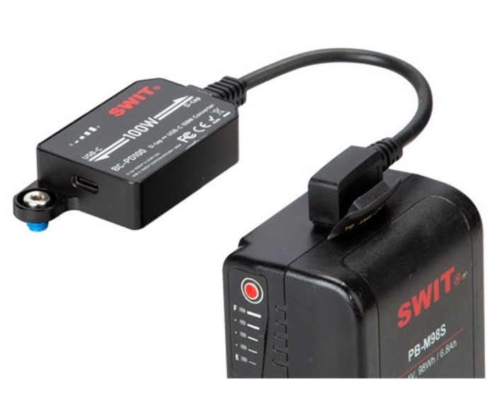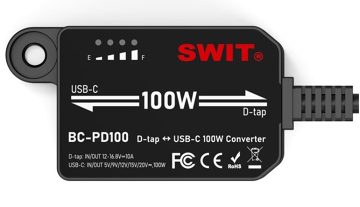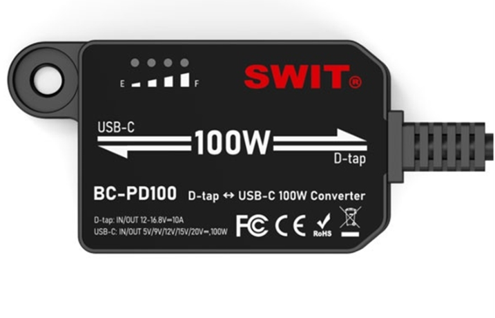 El SWIT BC-PD100 es un adaptador bidireccional de D-Tap a USB-C de 100 W PD que mejora cualquier batería de cámara con salida D-Tap para alimentar dispositivos USB-C o cargar baterías a través de USB-C, lo que lo hace ideal para flujos de trabajo profesionales en el plató.