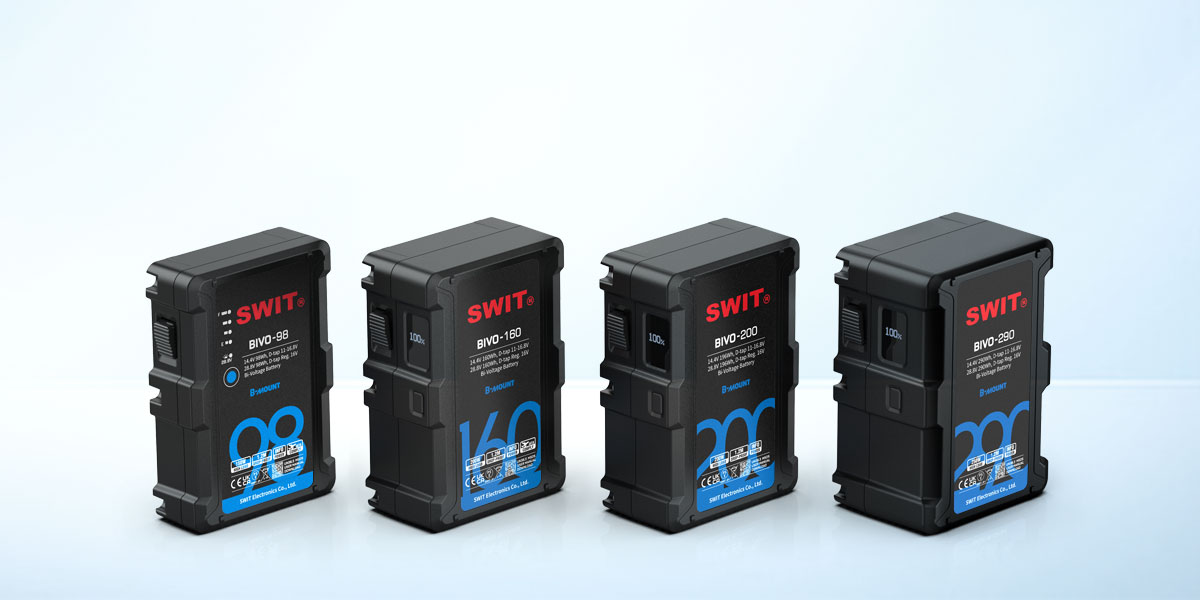 La gama de baterías BIVO Bi-voltage B-mount family cuenta con 98 Wh, 160 Wh, 196 Wh y 290 Wh, en diferentes tamaños y capacidades, para estabilizadores portátiles ligeros o para una selección de alimentación de larga duración.