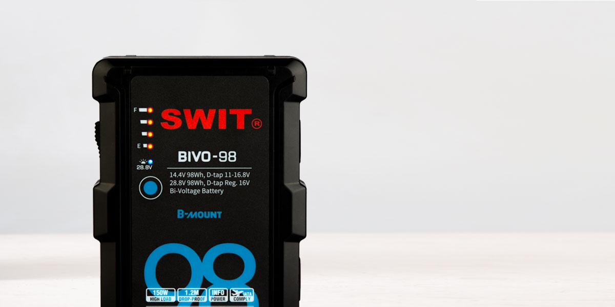 La BIVO-98 es una batería de montaje tipo B de doble voltaje de 14,4 V (11-16,8 V) y 28,8 V (22-33,6 V) para cámaras ARRI y diversos equipos cinematográficos compatibles con voltaje estándar. La batería detecta el valor de resistencia del pin de identificación de la placa de montaje B y, a continuación, suministra 14,4 V o 28,8 V sin riesgo de uso indebido.