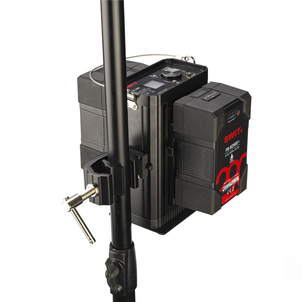 La caja de control del BL-200 se puede fijar a un soporte de luz de 25-45 mm y se desmonta rápidamente mediante una estructura en V, lo suficientemente resistente para 2 baterías de gran capacidad.