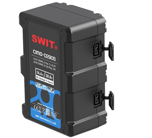 La SWIT CIMO-D290S es una batería profesional de 290 Wh con doble voltaje y pantalla OLED, que admite salidas de 14,4 V y 28,8 V para cámaras de cine y equipos de iluminación de alto rendimiento, con carga rápida, salidas D-tap duales y varios circuitos de protección.