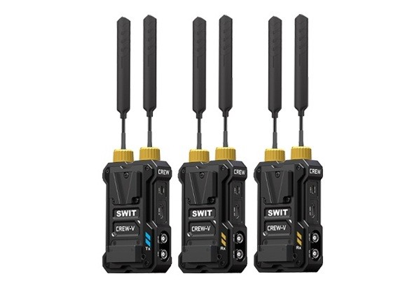 El paquete SWIT CREW-V Tx + 2Rx ofrece a los equipos profesionales un sistema inalámbrico para la transmisión y el monitorizado de vídeo que admite dos receptores para el seguimiento multipunto. Permite la transmisión fluida de vídeo HD sin pérdida de calidad de imagen y con una sincronización perfecta en todos los dispositivos dentro de un alcance de 1,2 km.