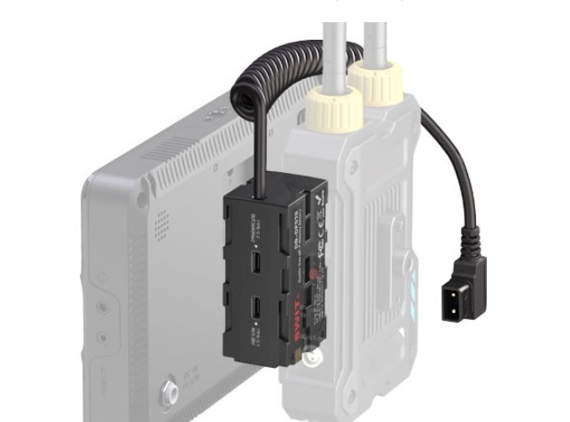 DB-DF570 es un innovador adaptador reversible para baterías NP-F, ampliamente utilizado para alimentar diversos dispositivos de vídeo. Está especialmente diseñado para conectar un monitor y un transmisor inalámbrico y alimentarlos simultáneamente a través de una interfaz D-tap o USB-C.