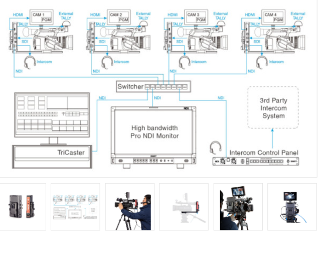 El sistema de intercomunicación integrado se conecta al panel de control ET-N80 e incluye funciones de silencio, llamada y conector para auriculares para la comunicación del equipo en tiempo real. El TALLY integrado y la compatibilidad con una luz TALLY externa proporcionan una indicación clara del estado de la emisión.