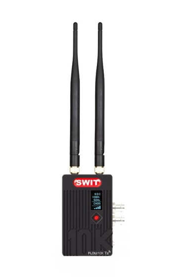 El SWIT FLOW10K Tx es un transmisor de vídeo inalámbrico FHD profesional de alta gama que ofrece una transmisión a muy larga distancia, de hasta 3000 metros. Proporciona un vídeo estable, resistente a las interferencias y de baja latencia, con total compatibilidad con DFS, lo que lo convierte en la opción ideal para flujos de trabajo de vídeo inalámbricos exigentes.