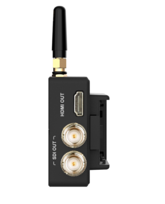 El sistema es de tipo plug-and-play y resulta ideal para monitores de dirección, drones, cámaras de teleféricos, steadicams y otros dispositivos para la producción sobre el terreno. El receptor está equipado con 4 antenas omnidireccionales que garantizan una recepción fiable de la señal y una reproducción precisa del color con resincronización de la señal. El audio integrado es compatible con dos canales, lo que permite la transmisión simultánea de audio HDMI o SDI.