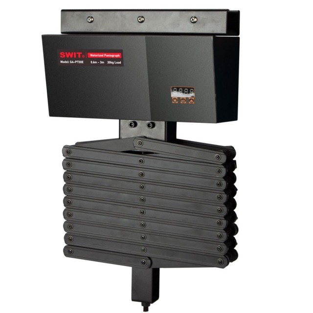 El pantógrafo GA-PT30E es un sistema de soporte de techo que ofrece control motorizado DMX para subir y bajar las luces de estudio, con una velocidad de 10 cm/s. Los estudios de vídeo profesionales pueden ajustar la altura de las luces mediante una consola DMX; la longitud de extensión es de 0,5 m a 2 m, con una carga máxima de 30 kg.