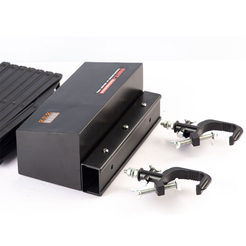 En la parte trasera del pantógrafo permite fijar el cable de alimentación de la luz o los cables DMX a cada sección, y cuando la luz se mueve hacia arriba y hacia abajo, los cables quedarán bien organizados y se deslizarán junto con el pantógrafo.