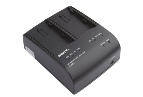 El cargador S-3602U admite entrada de corriente alterna (100-240 V, 50/60 Hz) y es compatible con las baterías Sony BP-U60/BP-U30 y Swit S-8U65/S-8U95. Los indicadores LED muestran claramente el estado de carga de cada canal, lo que garantiza un funcionamiento fiable y seguro.