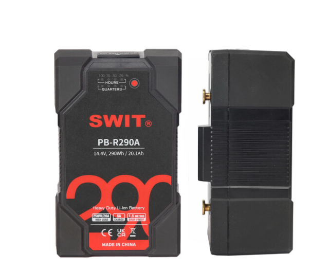 La SWIT PB-R290A es una batería Gold Mount de alto rendimiento con una capacidad de 290 Wh, diseñada para cámaras ENG y de cine, que ofrece una carga constante de 250 W / 20 A, una larga autonomía, una carga rápida y una estructura resistente a las caídas, ideal para entornos de producción profesionales.