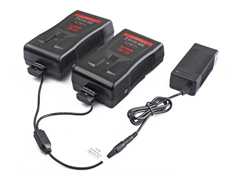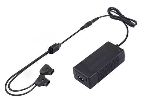 El PC-U130B2 consta de un módulo de alimentación CA-CC y un cable CC D-tap de doble conector para conectarse a la toma D-tap de las baterías. De este modo, puedes cargar dos baterías a la vez. El cargador ofrece una salida de carga rápida de CC de 14-16,8 V y 3 A en total.