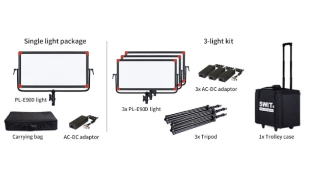 El SWIT PL-E90D 3KIT es una solución de iluminación portátil profesional diseñada para retransmisiones, rodajes de documentales, entrevistas y aplicaciones de estudio. Cada panel LED PL-E90D utiliza 480 diodos LED SMD montados en los bordes, en combinación con la tecnología exclusiva de guía de luz de 90° de SWIT, que produce una luz extraordinariamente suave, brillante y uniformemente distribuida, al tiempo que mantiene un diseño delgado y ligero.