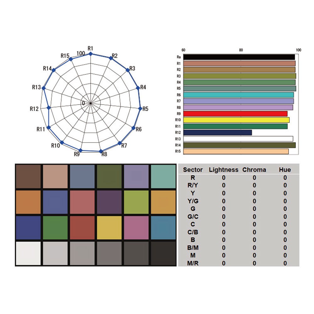El PL-E90L utiliza diodos LED de montaje superficial de última generación con un índice de reproducción cromática (CRI) superalto de Ra 99 y un índice de consistencia de iluminación televisiva (TLCI) de 99. Los objetos conservan exactamente sus colores originales bajo la luz.
