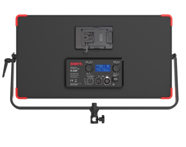 El SWIT PL-E90P es un avanzado panel de iluminación LED resistente al agua, desarrollado como una versión mejorada del modelo PL-E90D con una estructura resistente a la lluvia de clase IP54. El modelo PL-E90P, diseñado para producciones profesionales tanto en exteriores como en interiores, puede funcionar en condiciones de lluvia en cualquier ángulo de iluminación sin protección externa y es compatible con baterías V-mount resistentes a la lluvia con clasificación IP54 para un funcionamiento totalmente resistente a la intemperie.