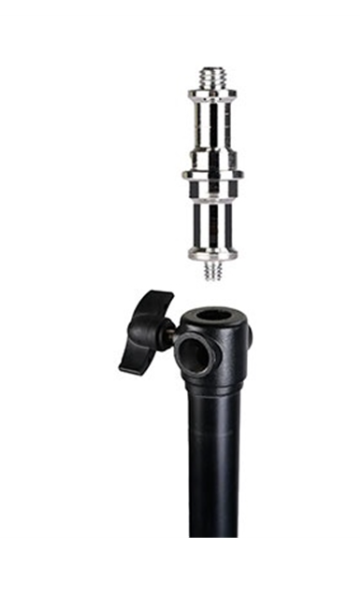 Cada trípode está equipado con un cabezal macho de 5/8" con pasador pequeño, que incluye tornillos de 1/4" y 3/8", lo que garantiza una amplia compatibilidad con equipos de iluminación profesionales. Los resortes amortiguadores integrados aumentan la seguridad al absorber caídas repentinas durante el ajuste de la altura, protegiendo así tanto el equipo de iluminación como el propio trípode.