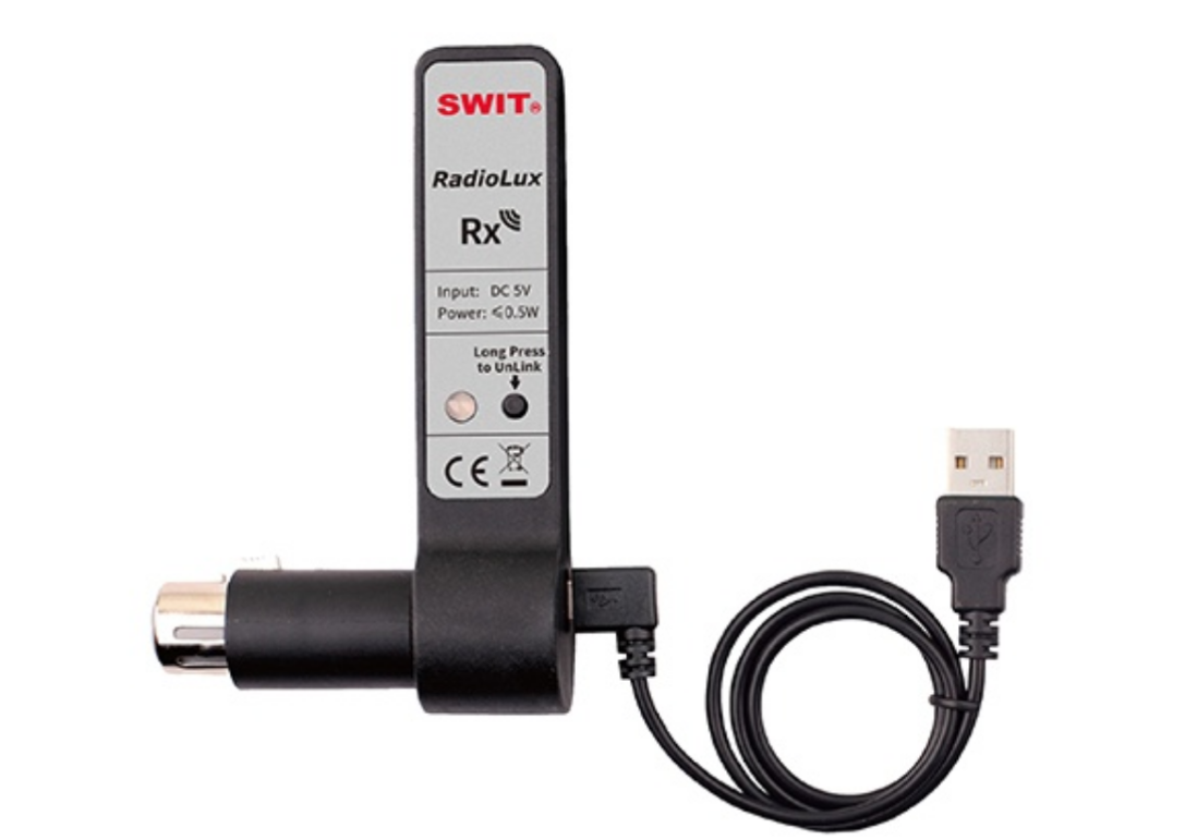 El SWIT RadioLux Rx es un receptor DMX inalámbrico profesional que utiliza el protocolo RadioLux para una transmisión de alta fiabilidad en la banda de 863–928 MHz. Está diseñado para iluminación de estudio, en directo y de retransmisión, y permite el control inalámbrico DMX512 de un número ilimitado de dispositivos con baja latencia y una excelente resistencia a las interferencias.