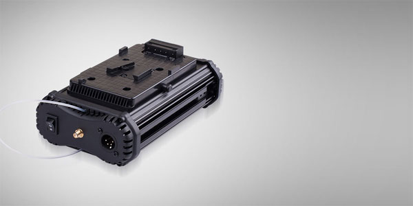 El S-2610 admite una entrada XLR de 4 polos de corriente continua de 11-17 V y está equipado con una placa de batería para la alimentación mediante una batería V-mount.