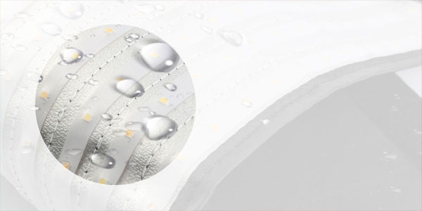 El tejido elástico cuenta con una cubierta resistente a la lluvia que protege el LED del agua cuando se utiliza en exteriores. El tejido se limpia fácilmente con agua.