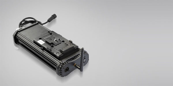 El S-2630 admite una entrada XLR de 4 polos de corriente continua de 11-17 V y está equipado con una placa de batería para la alimentación mediante una batería V-mount.
