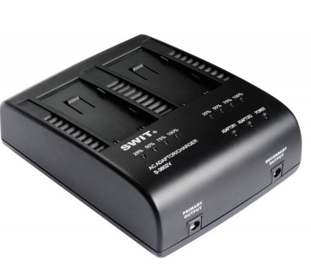 La SWIT S-4030 es una estación de alimentación de 4 baterías con montura en V que