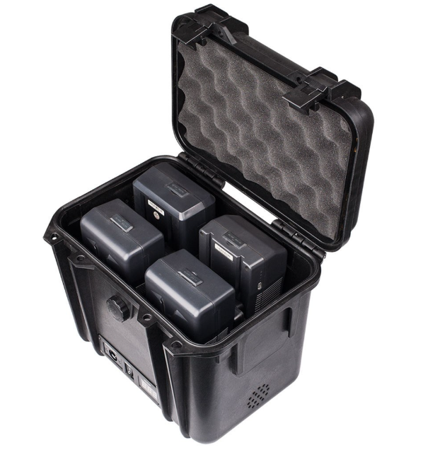 La SWIT S-4030 es una estación de alimentación de 4 baterías con montura en V que