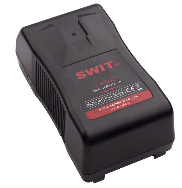 La S-8183S+ es una batería de iones de litio de 270 Wh con montura en V para videocámaras