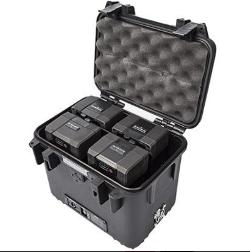 El sistema permite cargar las baterías directamente dentro de la caja mediante el cargador de 5 A incluido, lo que elimina la necesidad de extraer las baterías para cargarlas. Este diseño integrado garantiza un tiempo de funcionamiento más prolongado y una alimentación fiable para cámaras de cine, luces y otros dispositivos con un alto consumo energético, lo que lo convierte en una solución de alimentación imprescindible para las producciones de vídeo profesionales.