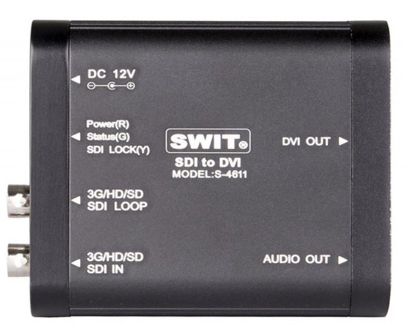 El convertidor SWIT S-4611 de 3G/HD/SD-SDI a DVI permite visualizar fácilmente fuentes de vídeo SDI en monitores DVI, televisores, proyectores y pantallas múltiples. Este dispositivo compacto admite resoluciones de hasta 1080p60 y convierte una entrada 3G/HD/SD-SDI en una salida DVI-D, manteniendo una alta calidad de imagen y estabilidad de señal.