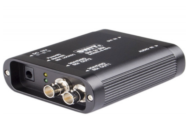 La salida en bucle SDI integrada permite la conexión simultánea a un monitor SDI secundario para la visualización local. El convertidor también separa hasta dos canales de audio SDI integrado (48 kHz) y los transmite a través de un conector analógico estéreo de 3,5 mm, lo que lo hace adecuado para monitorización o altavoces externos.