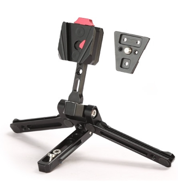 El TA-T10S también puede transformarse en un trípode de mesa, lo que resulta ideal para configuraciones compactas. Plegado, mide tan solo 103×38×30 mm, por lo que es portátil y fácil de transportar. Esta placa universal es ideal para profesionales que necesitan una fijación flexible y una distribución fiable de la fuerza en cualquier entorno fotográfico.
