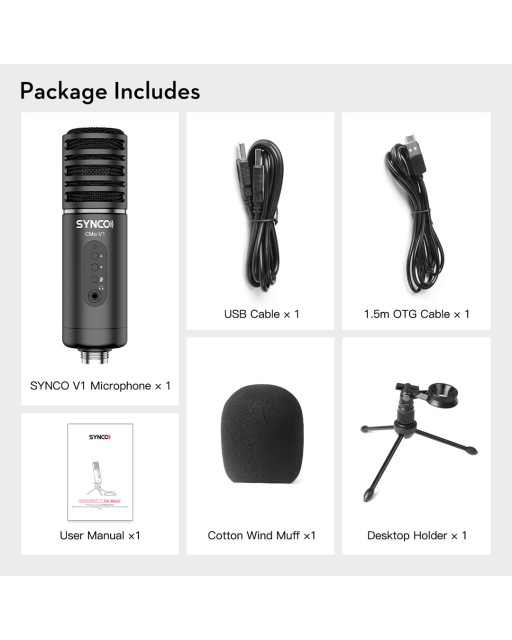 El CMic-V1 es el primer micrófono electret de membrana grande con alimentación y salida USB de la marca Synco. Ofrece una respuesta de frecuencia amplia y equilibrada en el rango de 20 Hz a 20 kHz y un sonido brillante para un uso versátil en estudios domésticos, retransmisiones en directo, etc. La electrónica integrada proporciona salida USB, la posibilidad de escuchar a través de auriculares (conector de 3,5 mm) y funciones de control de ganancia y silenciamiento disponibles mediante botones integrados. El paquete también incluye un soporte de mesa...