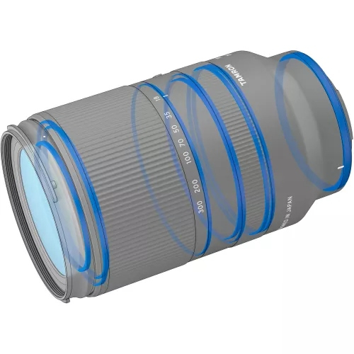 El sistema óptico, cuidadosamente equilibrado, incluye varios elementos de cristal especiales que permiten un zoom con la máxima calidad de imagen. La resolución, desde el centro óptico hasta los bordes de la imagen, se mantiene constantemente alta en todo el rango de distancias focales. Al igual que en otros objetivos Tamron para cámaras sin espejo, el diámetro del filtro es de 67 mm. Gracias al mecanismo VXD, el objetivo ofrece un enfoque rápido, silencioso y preciso.