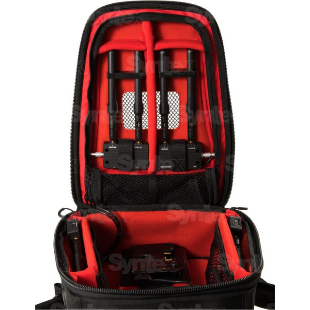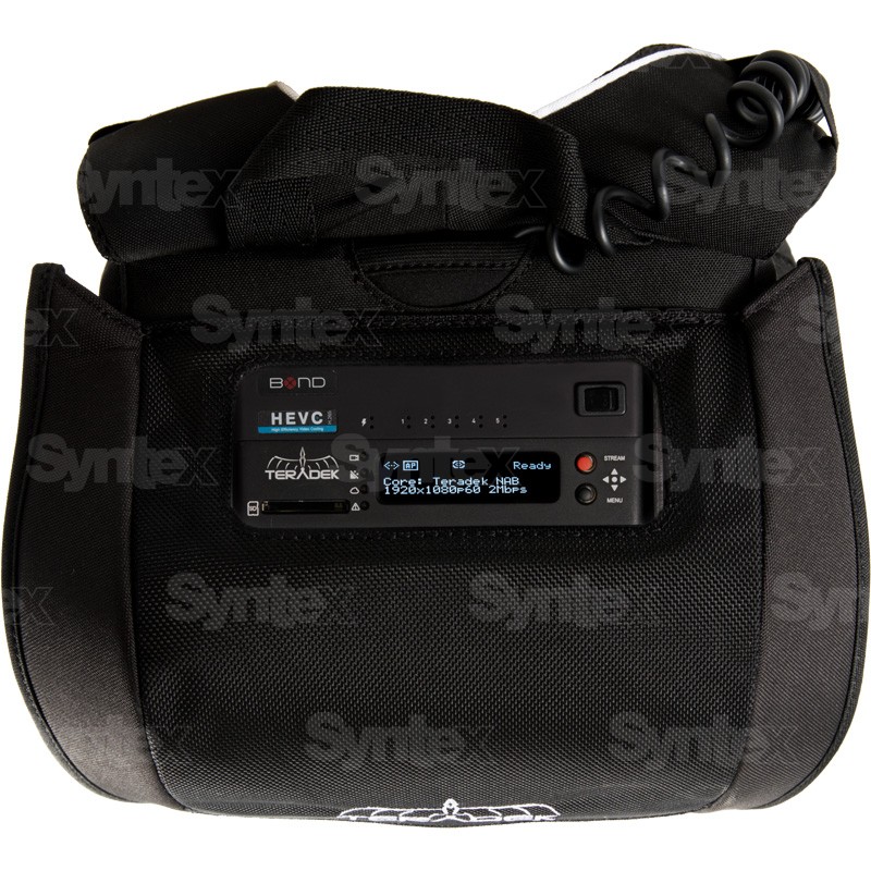 La mochila Bond 759 HEVC de Teradek incluye el módulo de expansión Bond 757 con el codificador Cube 755, el módem USB Node Cellular 4G LTE (Europa/Asia) y una placa V-mount.