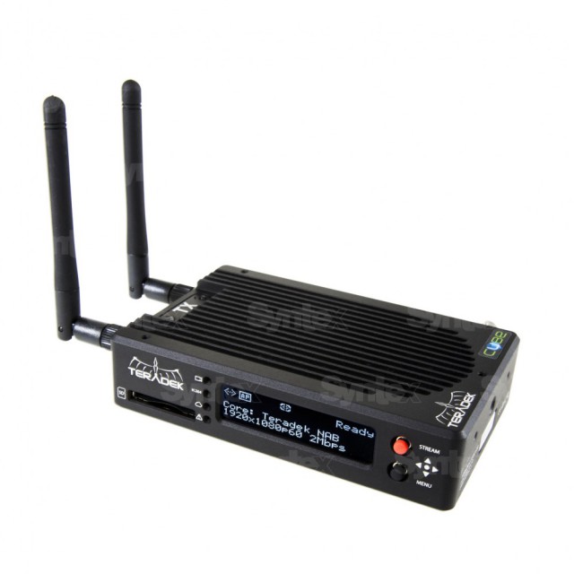 El Teradek Cube 655 es un codificador H.264 en tiempo real con entradas 3G-SDI y HDMI. Codifica vídeo con una resolución de hasta 1080p a velocidades de bits de hasta 15 Mb/s, lo que permite la transmisión de imágenes de alta calidad a través de Ethernet, Wi-Fi o USB (la transmisión por Wi-Fi está limitada a 10 Mbps).