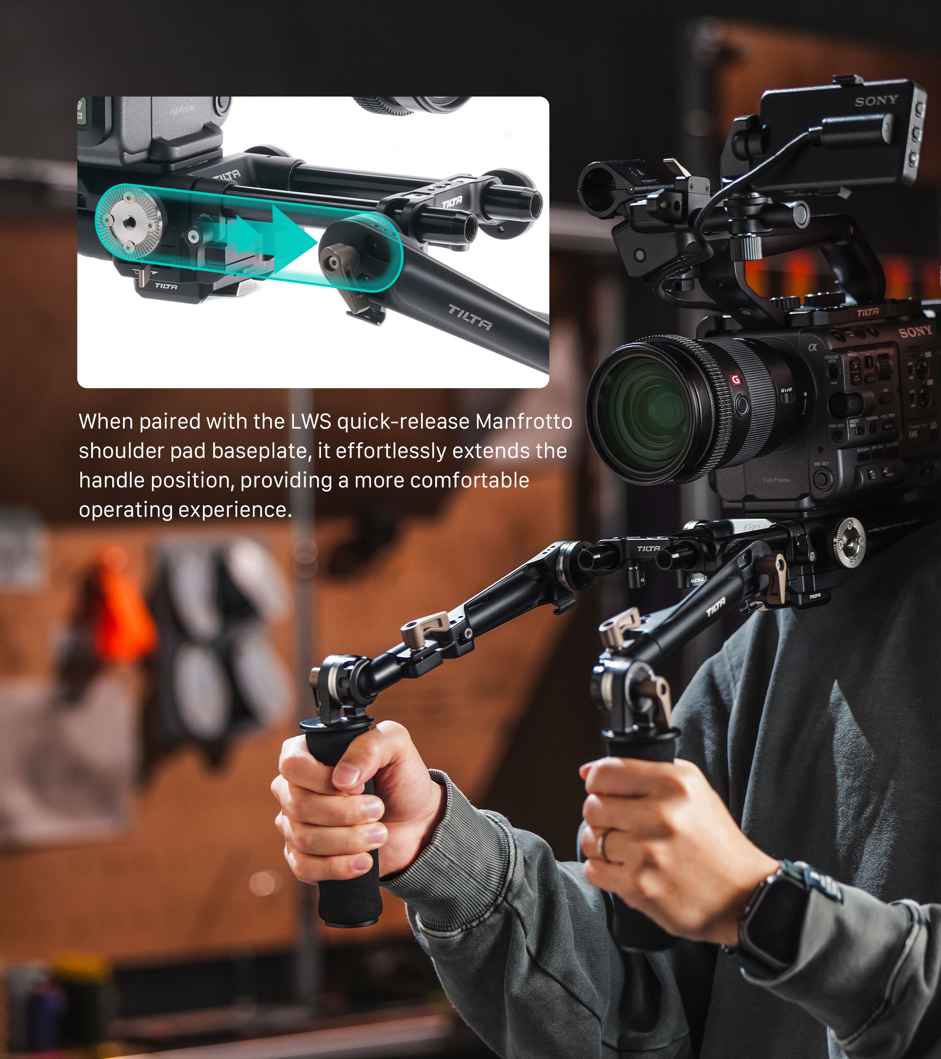 Presentamos el adaptador LWS Dual Rosette de 15 mm. Este adaptador tipo puente se monta mediante varillas LWS de 15 mm y permite a los usuarios acoplar accesorios mediante uniones de roseta.