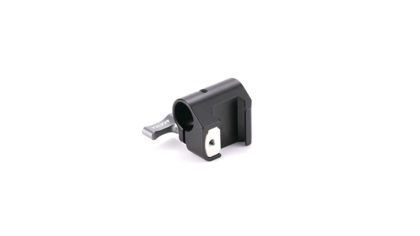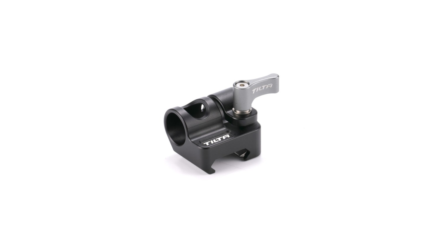 Este soporte de 15 mm para barra es la opción ideal para fijar de forma segura accesorios más pesados a la barra del sistema de cámaras mediante una de nuestras jaulas de media cámara o de cámara completa, equipadas con un riel NATO.
