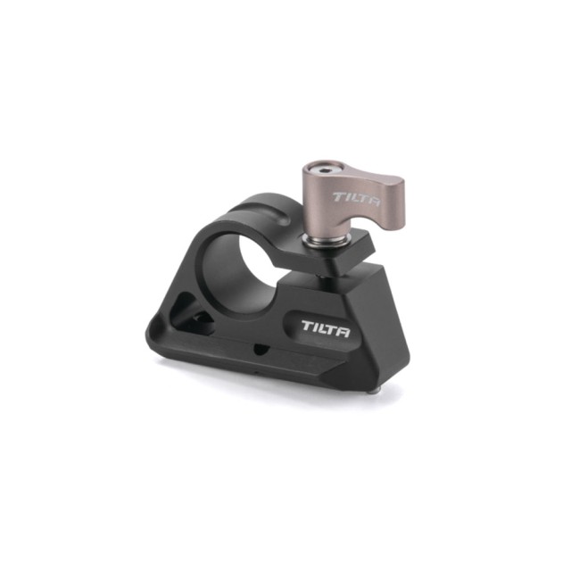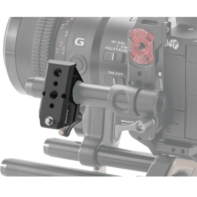 Este soporte de 15 mm para barra es la opción ideal para fijar de forma segura accesorios más pesados a la barra del sistema de cámaras mediante una de nuestras jaulas de media cámara o de cámara completa, equipadas con un riel NATO.
