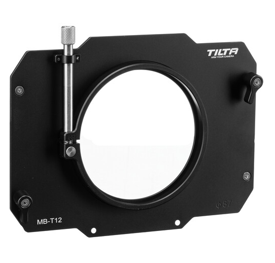 El MB-T12-87, diseñado específicamente para el difusor Tilt MB-T12, transforma el anillo de goma original de 114 mm o el soporte de varilla del difusor en un sistema de fijación seguro de 87 mm. Se inserta en los orificios del matte box y se fija inmediatamente con dos tornillos de seguridad; a continuación, sujeta la parte delantera del objetivo mediante un gran tornillo trasero que se puede manejar fácilmente incluso con guantes. El aluminio mecanizado con CNC y los herrajes de acero inoxidable garantizan una alineación perfecta y una gran resistencia. Es muy popular para objetivos como algunos Sigma Cine prime, el Tokina Cinema ATX 11-20 mm T2.9 (87 mm en la parte delantera), objetivos fotográficos adaptados y muchas partes frontales anamórficas que miden exactamente 87 mm.