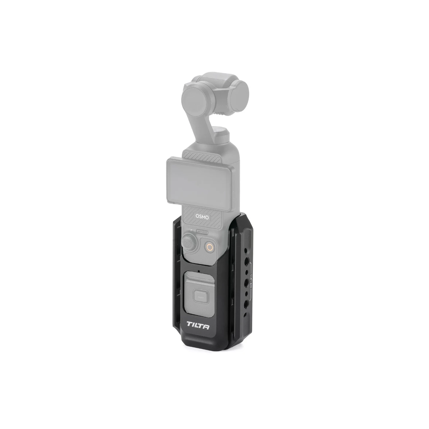 Fija la empuñadura oficial y el módulo de expansión al DJI Osmo Pocket 3 mediante la rosca inferior de 1/4″, de modo que encajen perfectamente y no obstaculicen la pantalla, los botones ni las funciones de la cámara.