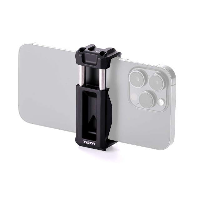 Soporte ajustable para móvil Tilta, la opción ligera perfecta para ampliar las posibilidades de grabación de vídeo de tu smartphone. El soporte cuenta con una rosca de 1/4-20" y puntos de fijación multidireccionales, lo que lo hace ideal para acoplar smartphones a trípodes de distintos tamaños.