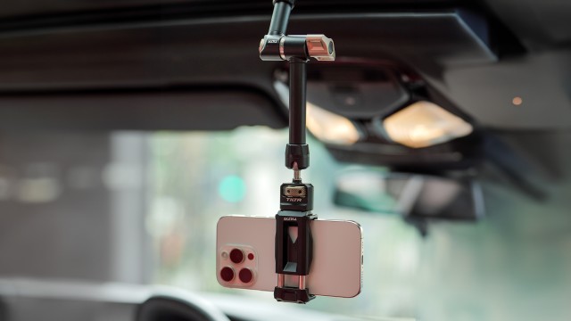 También se puede utilizar con brazos articulados y ventosas para su uso en espacios reducidos, como por ejemplo en vehículos en movimiento.