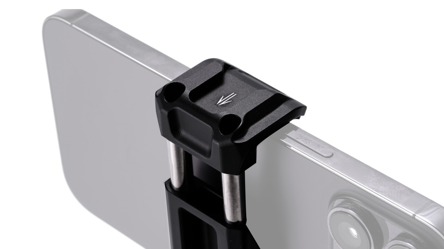 El soporte está equipado con roscas de 1/4-20" con puntos de posicionamiento multidireccionales, ideales para fijar smartphones a trípodes de diferentes tamaños.