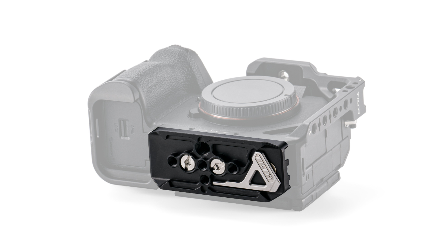 Esta placa ARCA de fijación rápida se puede acoplar directamente a la parte inferior de la jaula de la cámara Sony a1 II/a9 III.