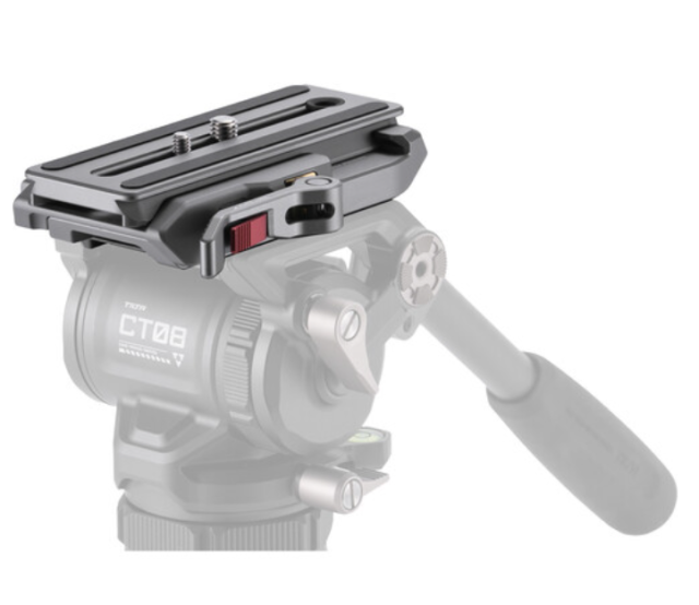 El kit TT-CT08-QRRK-TG Dual Quick Release Receiver, diseñado a medida para el cabezal fluido Tilt CT08 75 mm Cine, sustituye el sistema de fijación estándar por un receptor universal tipo Arca, compatible también con placas tipo Manfrotto 501PL. Su resistente estructura de aluminio y acero inoxidable cuenta con un elegante acabado en color Titanium Grey, que combina a la perfección con el diseño del CT08. El diseño de encaje a presión con resorte, combinado con una palanca de bloqueo sobredimensionada y fácil de manejar, garantiza que la placa de fijación rápida encaje sin holgura y se mantenga en su sitio incluso bajo cargas pesadas.