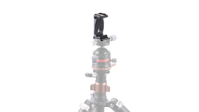 Este soporte se fija a tu smartphone mediante una pinza universal y cuenta en la parte inferior con una placa de fijación rápida ARCA, lo que permite montar cómodamente el sistema en gimbals basados en ARCA, como el DJI RS3 Mini.
