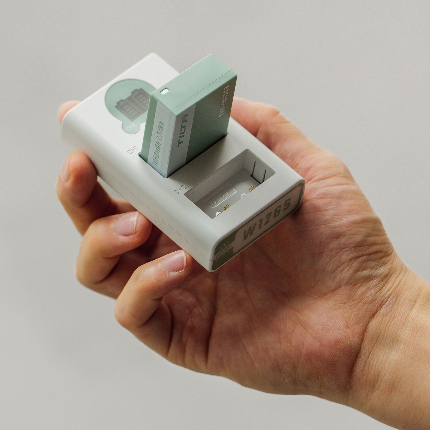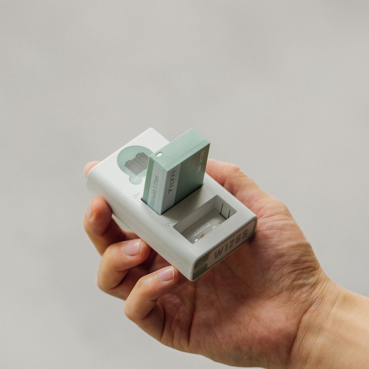 Es compatible con cualquier cámara o accesorio que admita baterías NP-W126S, como diversos modelos de Fujifilm. Las dos ranuras del cargador permiten la carga independiente, por lo que puede recargar una batería mientras la otra se recarga, lo que maximiza el tiempo de funcionamiento. Gracias a su diseño compacto, cabe fácilmente en una bolsa de cámara o en un bolsillo, lo que refleja el compromiso de Tilta con una infraestructura portátil de nivel profesional.